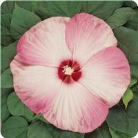 Vigorous, sturdy, shrub-like perennial. Large, showy, hollyhock-like flowers come in a variety of colors and bicolors including pink, white and red. Each flower has a prominent central staminal column which is white or yellow. Long bloom period from early summer to early fall. Broad-ovate to lanceolate green leaves. Great in borders or as a specimen plant.