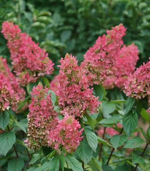 Vigorous, upright, deciduous shrub with oval to ovate, dark green leaves. Pointed, conical, terminal flower panicles contain fertile and sterile flowers and bloom from mid-summer into fall. Great for mass plantings, shrub borders, open woodland gardens and as a specimen.