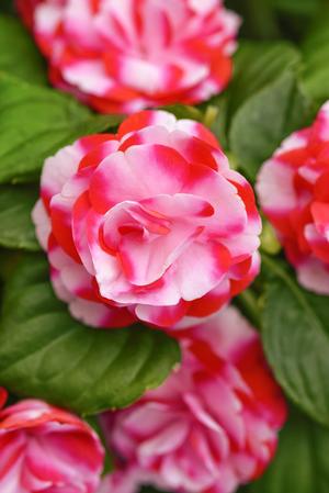 Rose-like, double blooms. This series was developed to have high resistance to downy mildew, a common and damaging disease for impatiens. It thrives in shady locations and provides continuous color throughout the spring-frost. Excellent mass planted, in containers and hanfging baskets.
