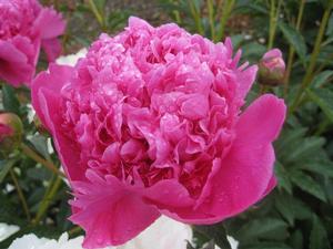 Erect, clump-forming, shrub-like perennial with dark green, pointed, compound leaves which may turn rusty orange or purplish in fall. Cup or bowl-shaped flowers come with great variety from single to double forms and white, pink, red and burgundy colors, blooming mid spring to early summer. Great in perennial borders, as a specimen, in mass plantings and as an herbaceous hedge.