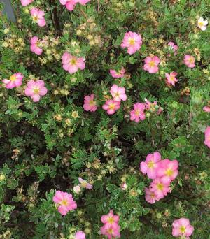 Compact, many-branched, deciduous shrub with compound-pinnate, green to blue-green leaves. Saucer-shaped, five-petaled flowers come in a variety of colors such as white, yellow, pink and orange and bloom in summer. Great for hedges, mixed or shrub borders and foundation plantings.