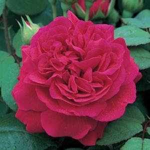 - Large, deeply cupped crimson-red blooms
