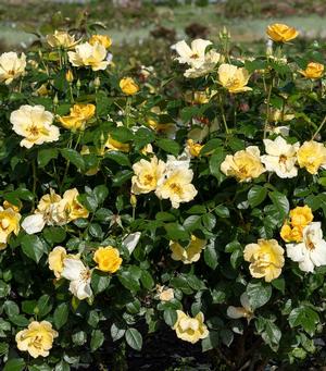 Shrub or climbing habit often with compound, dark green pointed leaflets and may be thorny or thornless. Flowers come in a wide range of colors and forms from single to double and white, yellow, pink, red and bicolors, fragrant and non-fragrant. Roses bloom from late spring through fall depending on the variety. Foliage can turn bronze, red or purple in fall. Flowers may be followed by small, round or tapered, berry-like fruits that turn red, orange or purple-black. Great for gardens, borders and trellises.