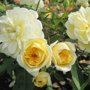 - Fully double, soft yellow blooms
