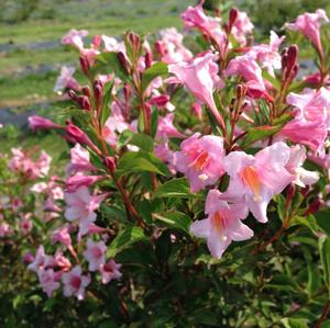 Dense, deciduous shrub with a rounded habit and elliptic to obovate, green, burgundy or variegated leaves with serrate margins. Funnel-shaped flowers bloom from late spring to early summer and come in a variety of colors such as white, pink and red. Plants may re-bloom according to variety. Great for borders, foundation plantings and hedges.